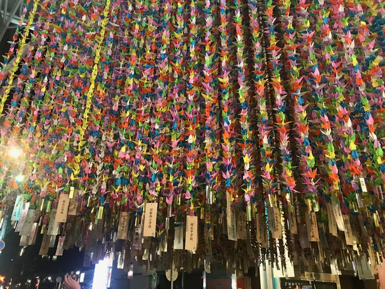 藤崎前では恒例の折り鶴の七夕、子供たちの願いを込めて