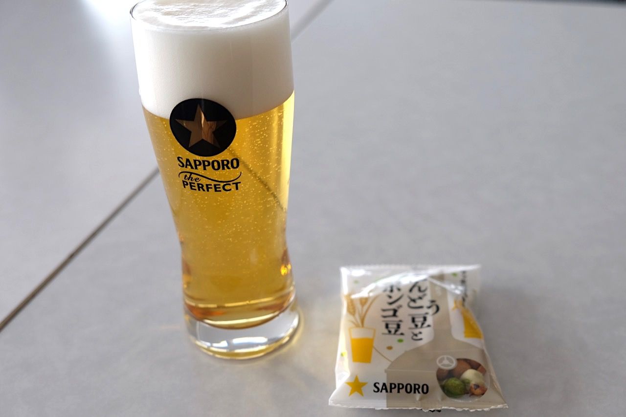 お楽しみの試飲です、サッポロ黒ラベルとクラシックの2杯になります