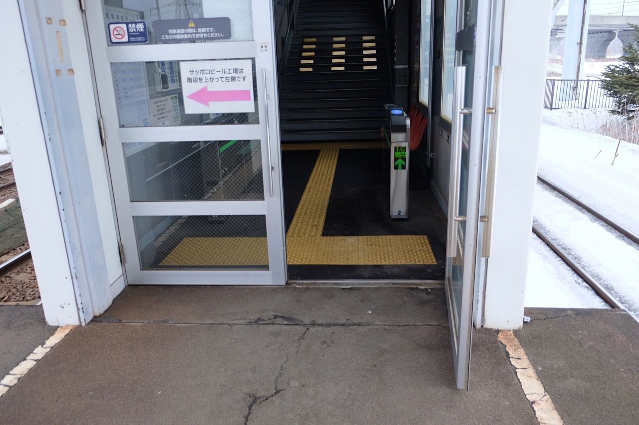 サッポロビール庭園駅は無人駅でホームからの階段にICカードの改札がありました