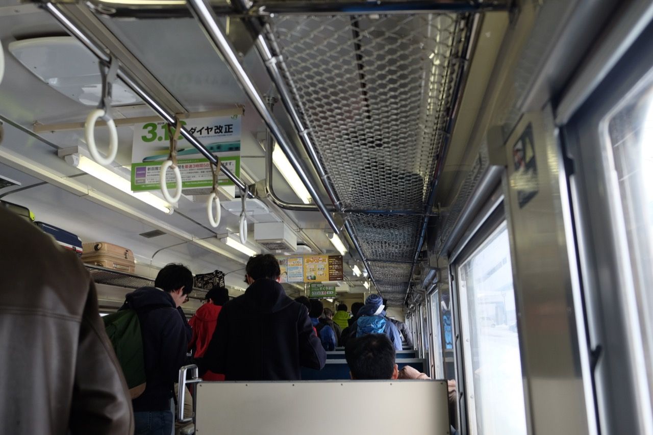 1両編成の車内はほぼ満席です
