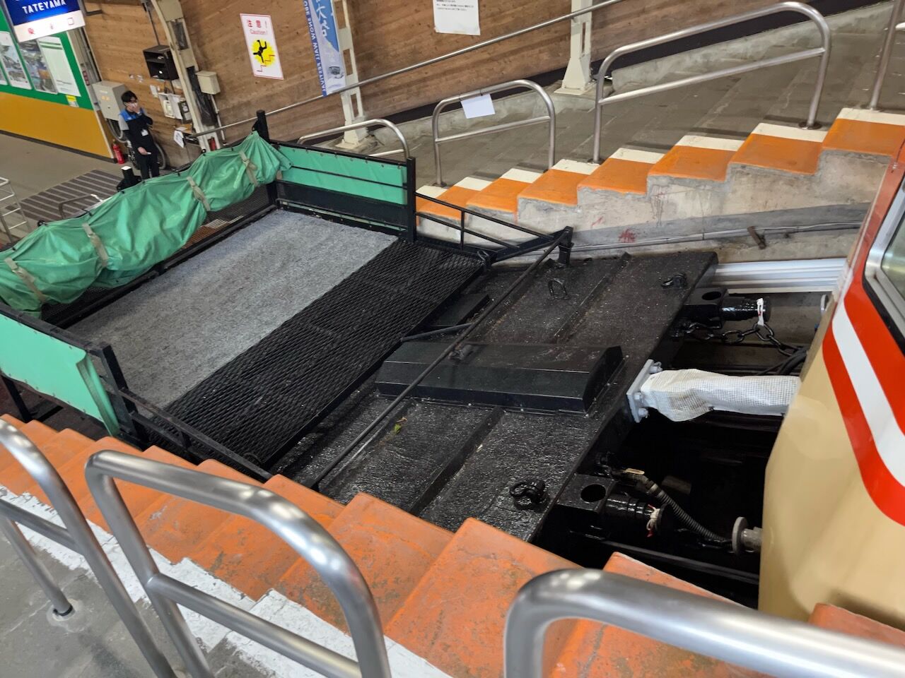 立山ケーブルカーは珍しい荷台付きケーブルカーです