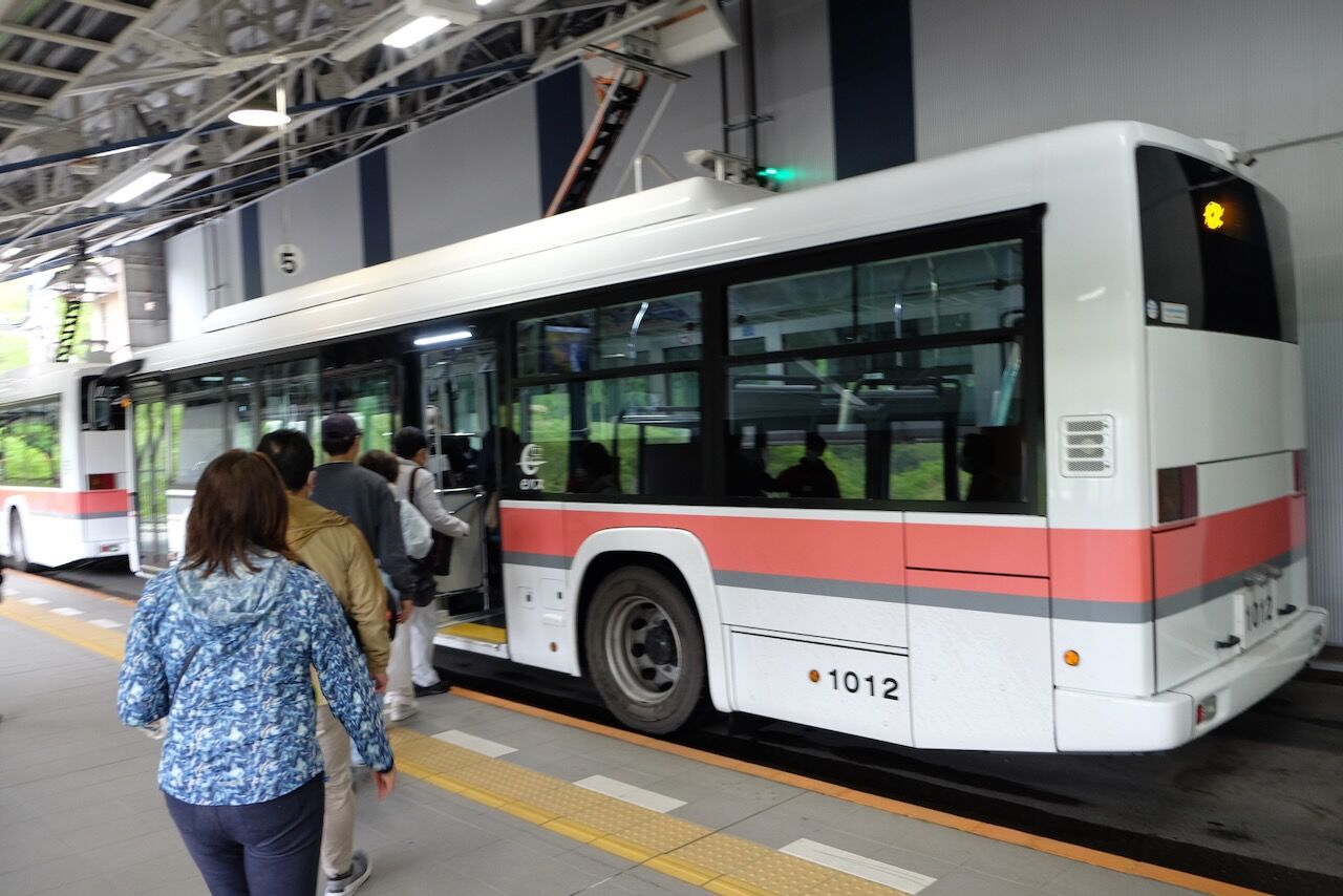 電気バスの出発地点、扇沢駅に到着