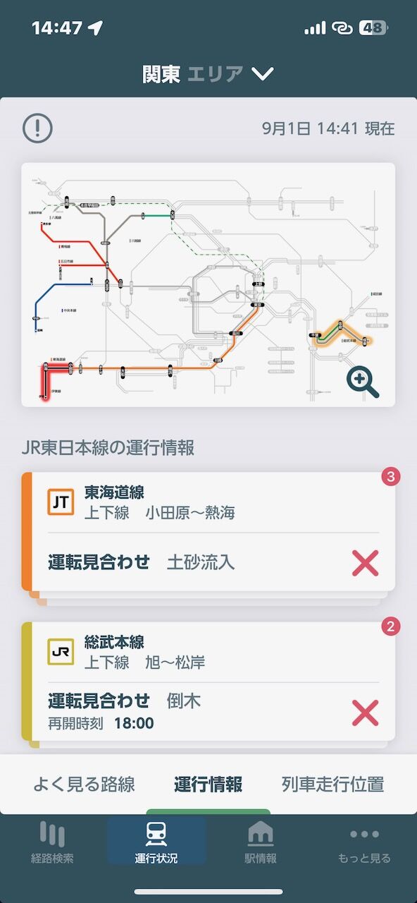 熱海からはJR東海になります、台風は熱帯低気圧になりましたが、まだまだ影響が残ります
