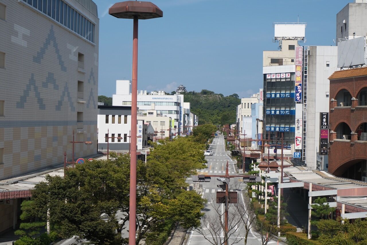 駅から彦根城が見えます、まるで姫路駅のようです