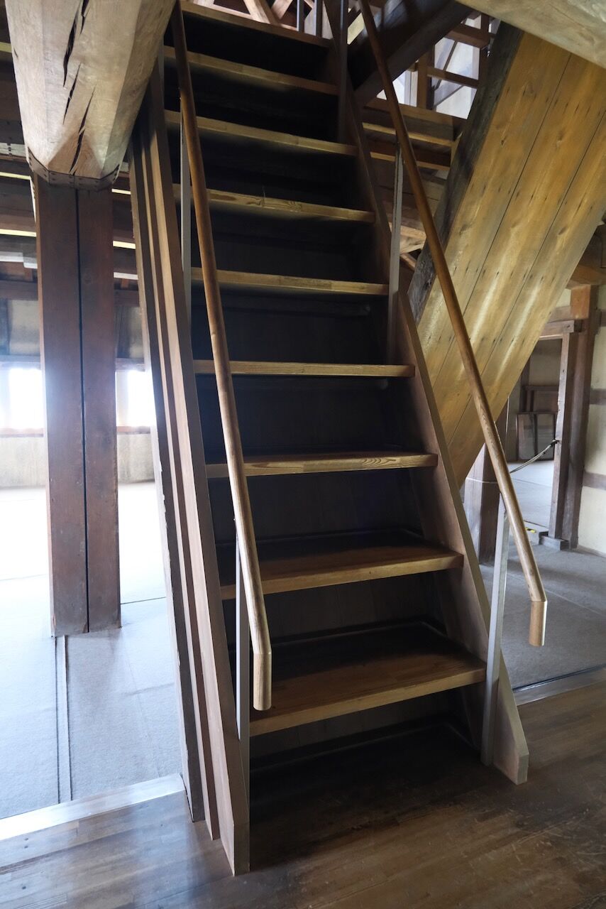 急な階段を登ります