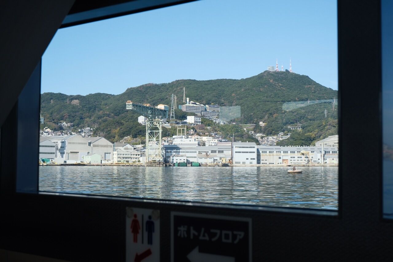 やはり窓際の席には座れませんでした、ここのツアーは軍艦島だけで無く、長崎にある世界遺産やそれに関する施設を周り説明してくれます