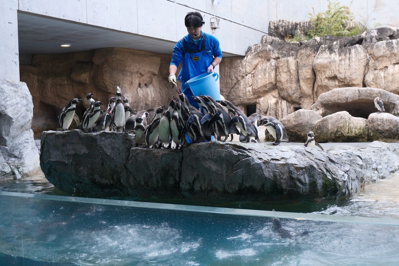 ペンギン1匹でエサのアジ20匹食べるそうで