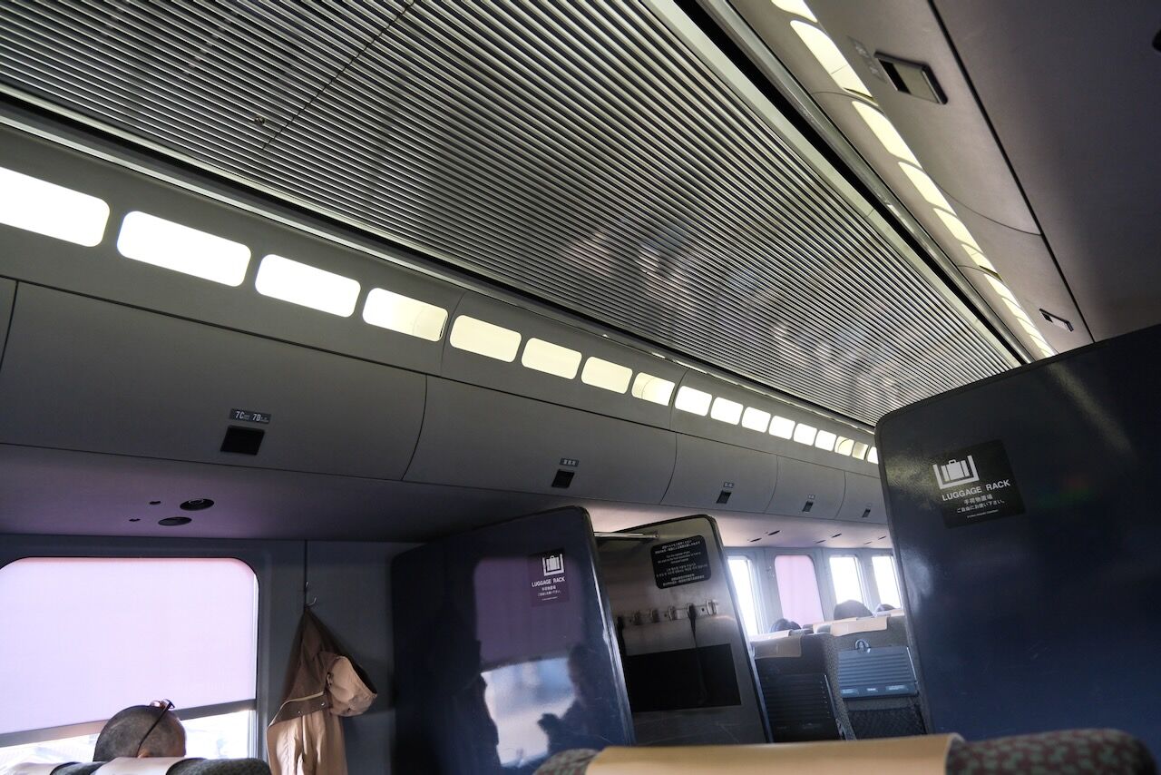 指定席は2列2列で余裕があります、木を多用していていい感じです